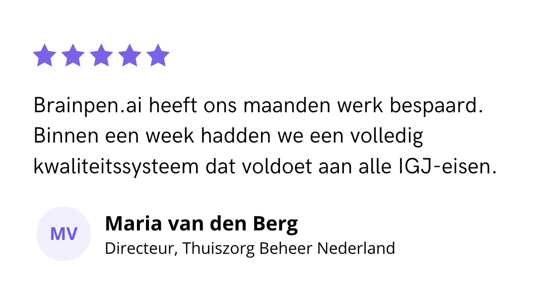 die nodig zijn om jouw zorg-organisatie aantoonbaar volgens de geldende wet-en regelgeving te laten functioneren